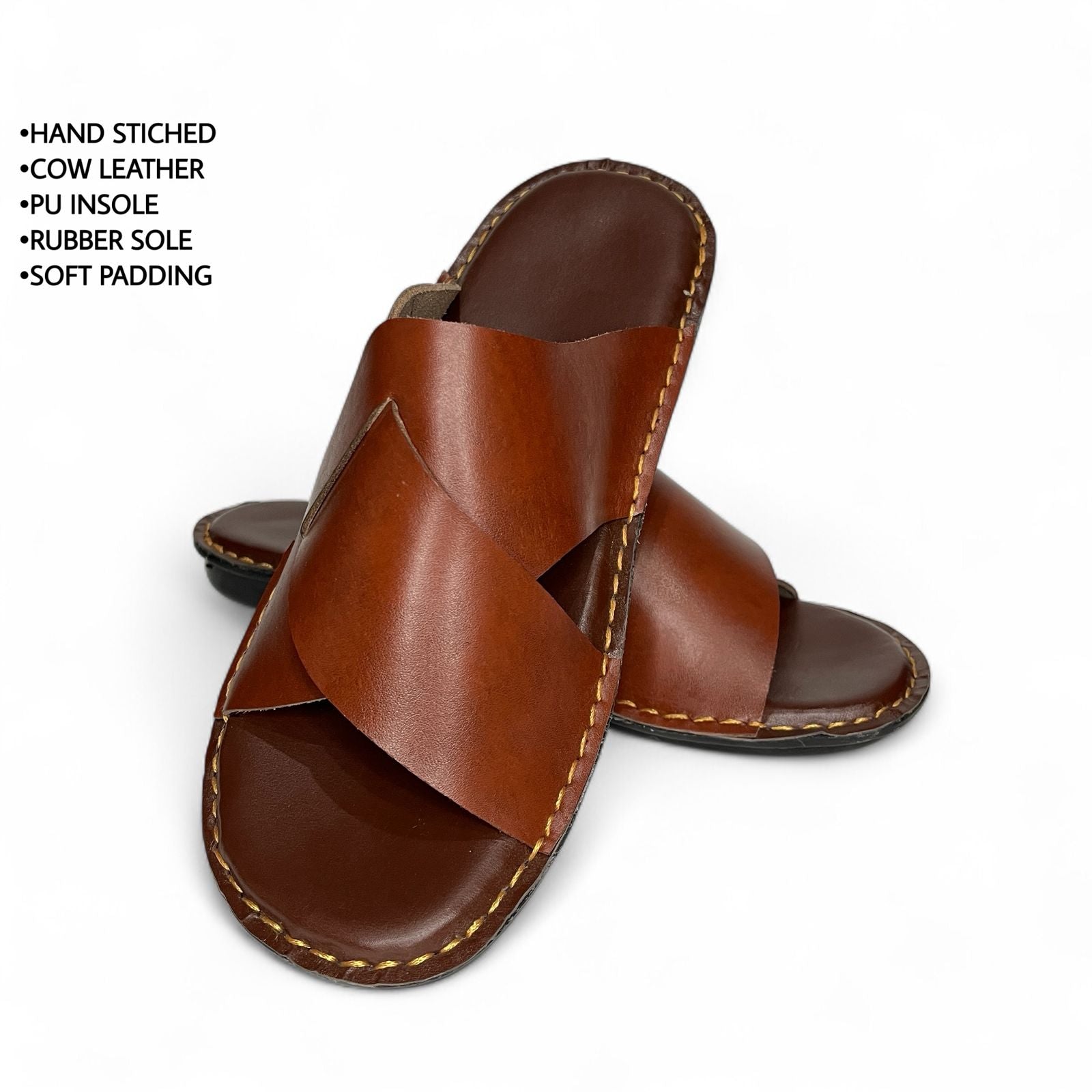 Step into effortless style and all-day comfort with BULL & BUFFALO Comfort Slippers. Handcrafted with premium quality leather, these slippers feature a sleek cross-strap design for a modern yet timeless look. The soft cushioned sole provides superior comfort, while the durable stitching ensures long-lasting wear.