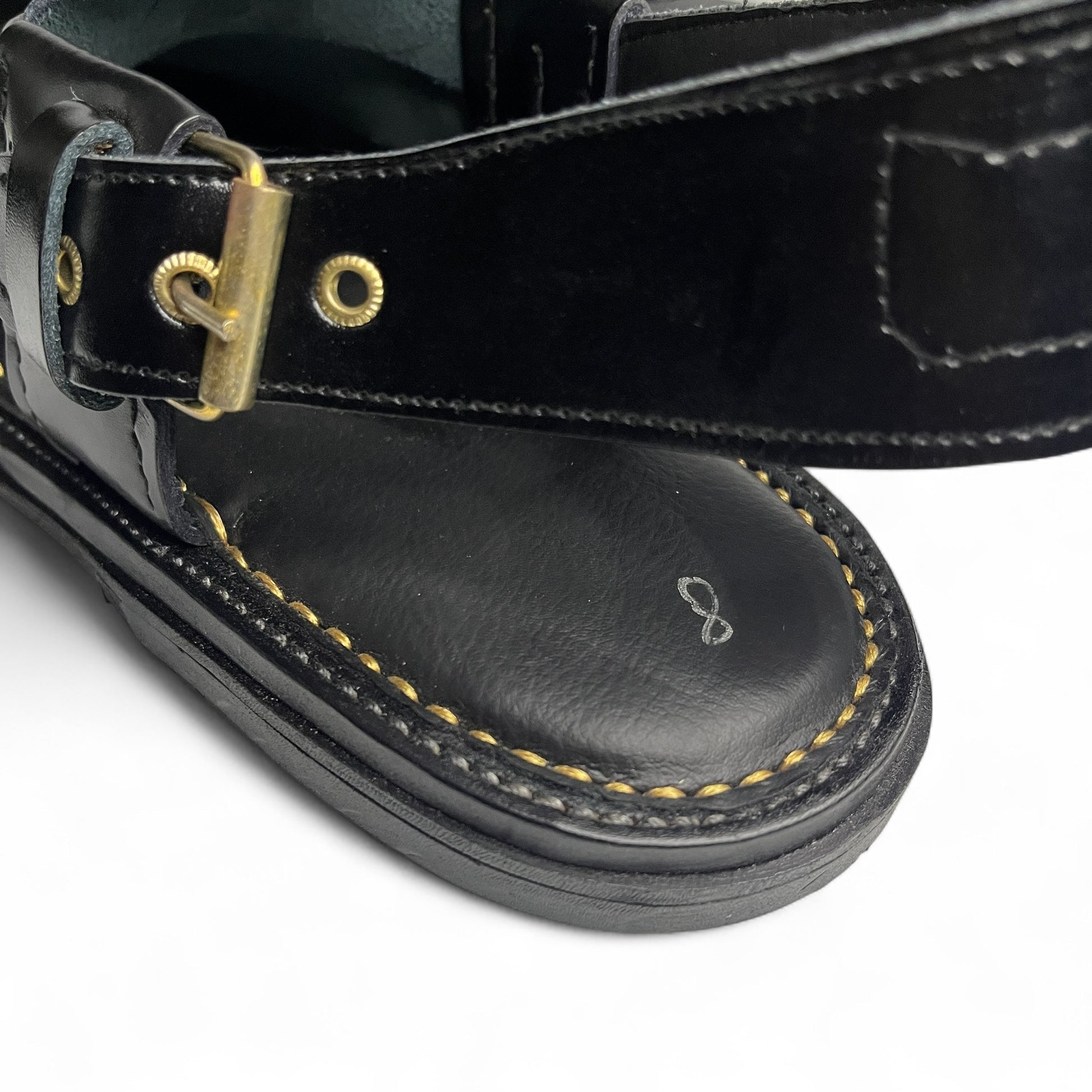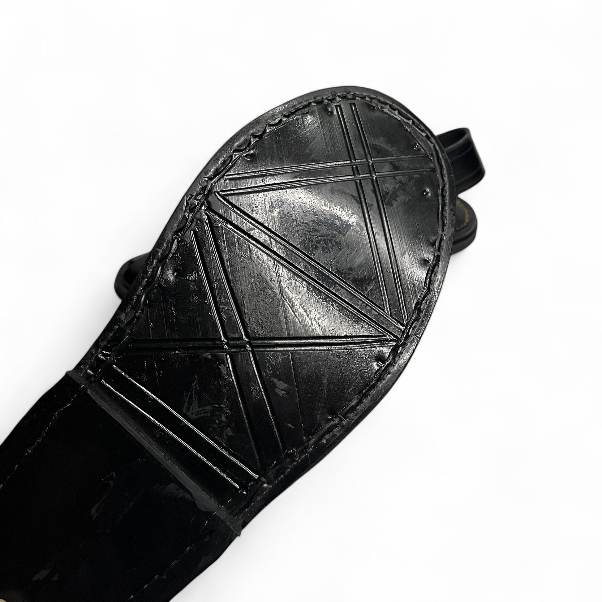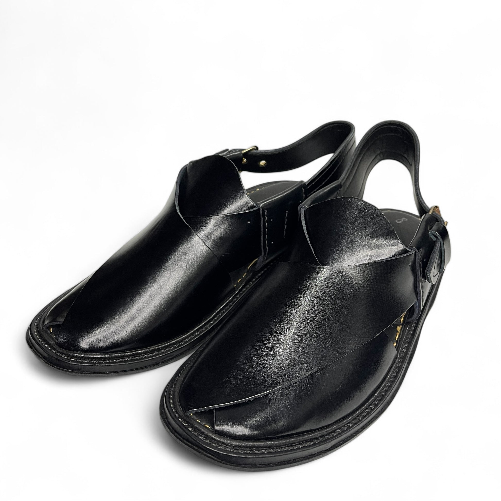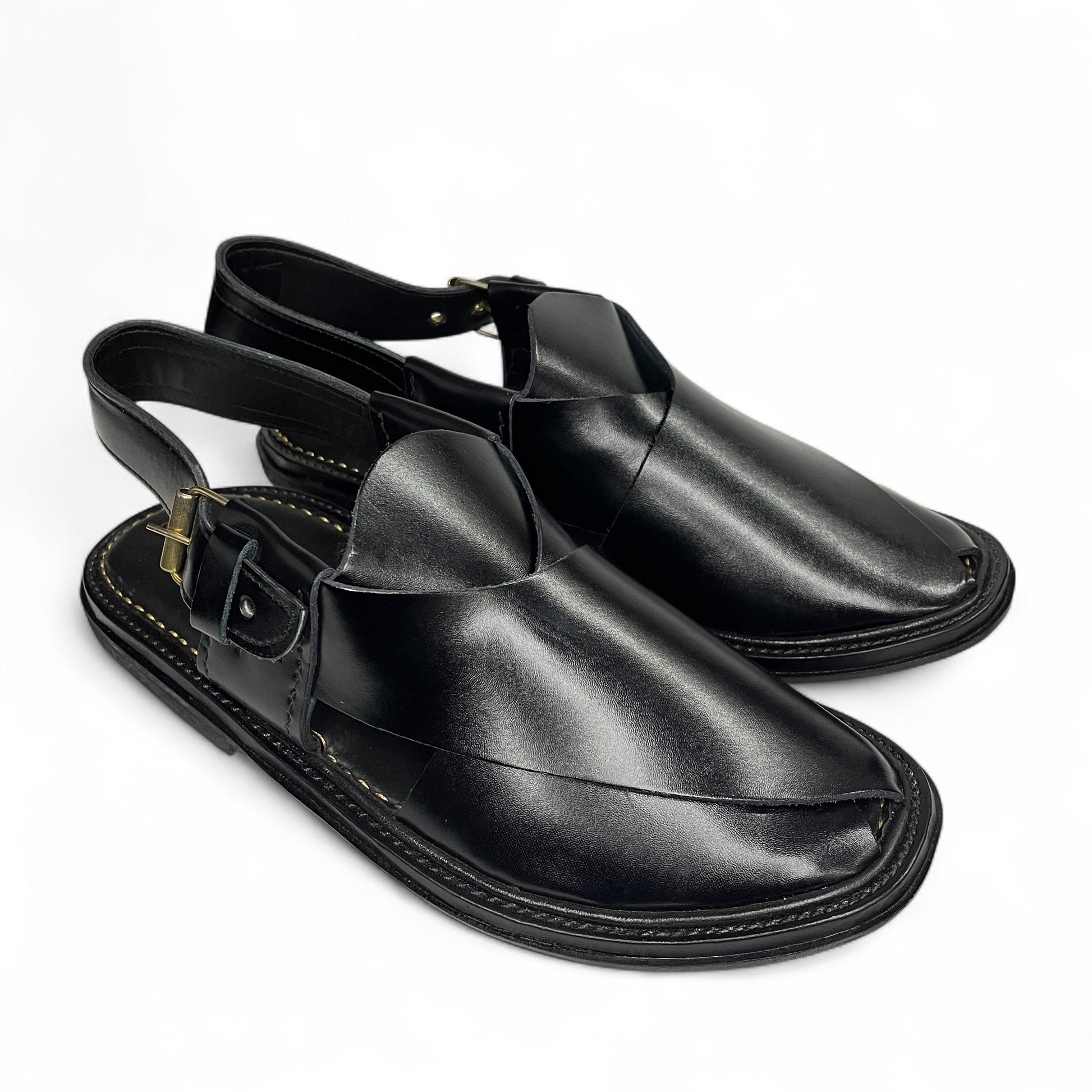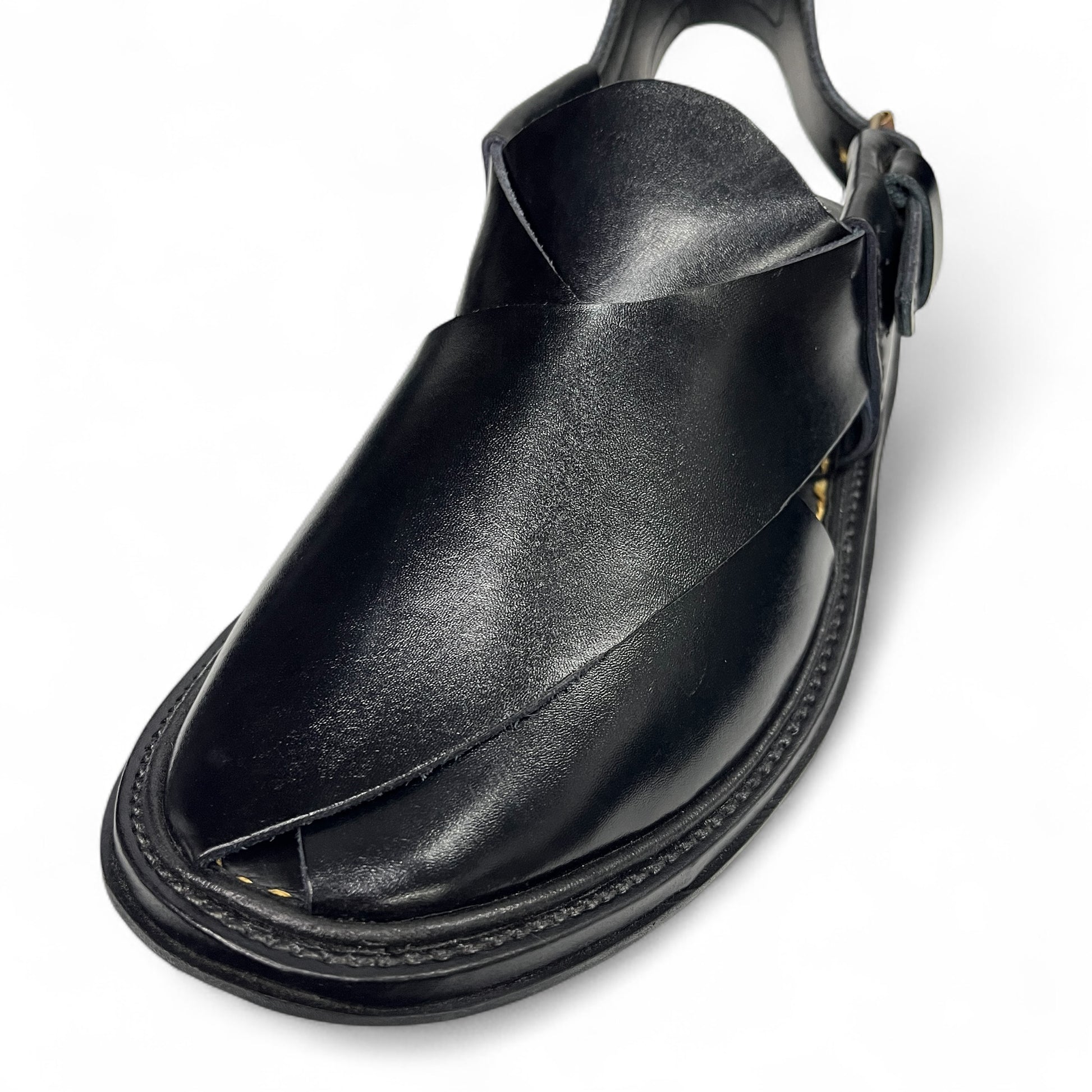 A true symbol of tradition blended with modern craftsmanship. The BULL & BUFFALO Classic Peshawari Chappal is handcrafted with genuine leather, designed for elegance, comfort, and durability. Its rich black finish and fine stitching reflect timeless style, while the adjustable strap ensures a secure fit for all-day wear.